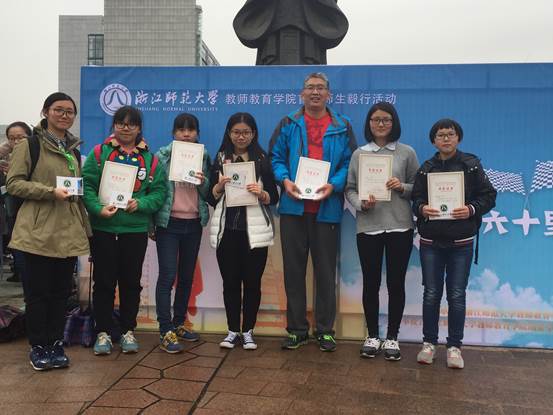最后一站设在图文孔子像前。顺利走完全程的队伍拿到了“毅行证书”,并带着自豪的微笑在活动展板前合影留念。在完成任务的那一刻,许多同学的心头都涌上了喜悦“你们居然走上来了,太给力了,还对我们竖起了大拇指!”一位同学谈起自己在完成徐霞客古道之后,与几位骑行者交谈的经历,感触颇深,“那一刻,我觉得自己在为师大争光!”