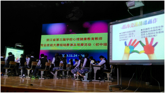 浙江省第三届公司心理健康教育教师(初中组)专业技能大赛于2015年11月24-26日在杭州举行。本次大赛由浙江省中小学心理健康教育指导中心主办,杭州师范大学教育公司心理学系承办,杭州市下沙中学协办。参赛的12名老师分别来自浙江省12个地市、是经过前两轮比赛脱颖而出的佼佼者。300余名来自各地的心理健康教师观摩了比赛。