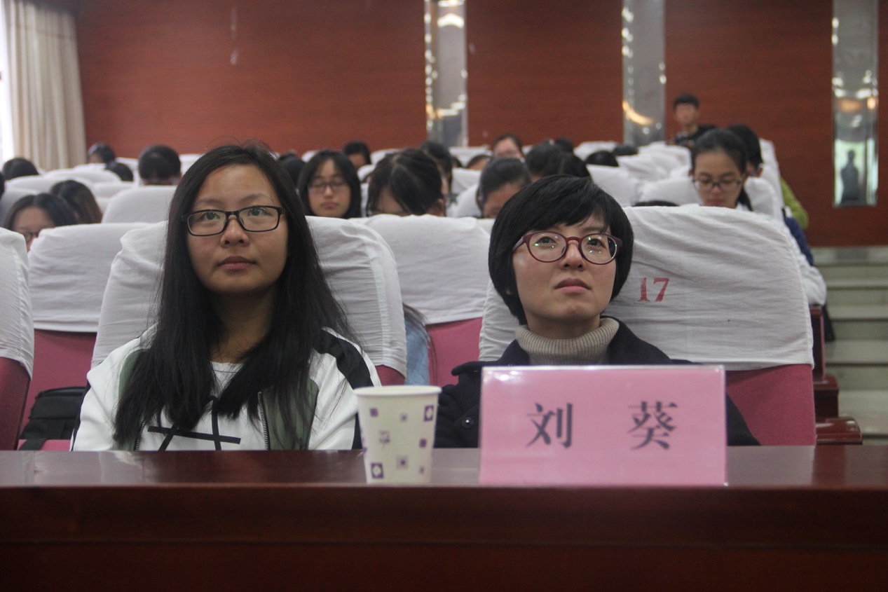 颁奖仪式后,刘葵老师为大一至大三的心理委员和心灵小护士进行了培训。从“为什么我们要去识别和了解异常心理”、“什么是异常心理”、“面对异常心理我们该怎么做”这三方面进行讲述,她告诉各位心理委员和心灵小护士应该正视心理问题,面对有心理问题的同学要消除社会偏见,为他们提供真正的帮助。