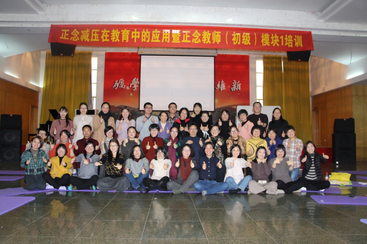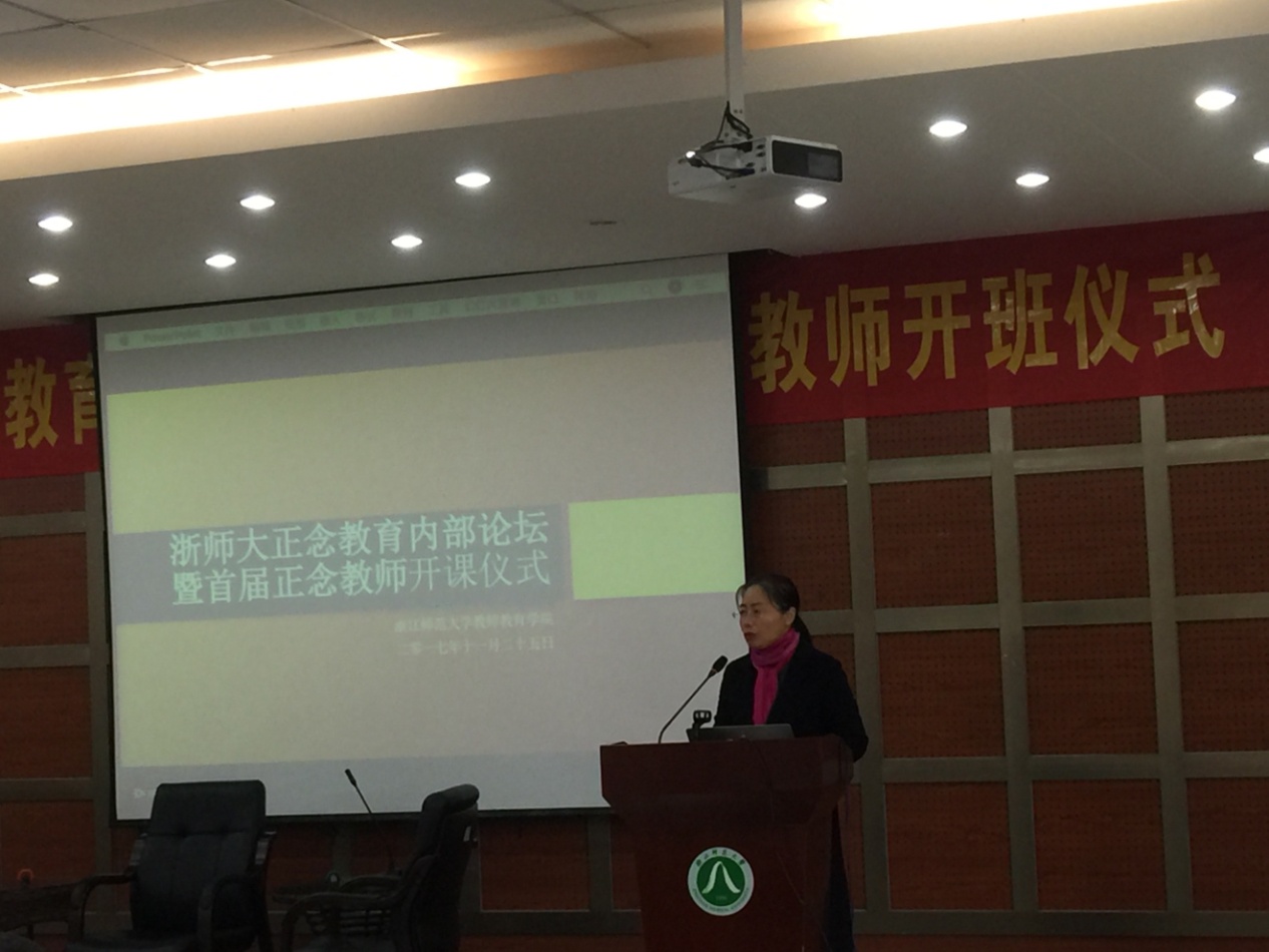 2017年11月25日-11月30日,由浙师大教师教育公司主办的“正念减压技术在公司产品中的应用”暨“正念教师”初阶培训工作坊,在公司举行。工作坊由来自台湾法鼓文理公司的温宗堃、公司正念研究实验室主任宋晓兰以及浙江科技公司的王艳明带领。这是正念训练系统在我省乃至全国首次进入基础教育领域,是将正念训练引入教师发展培训及校园文化建设的大胆尝试。工作坊受到了受训教师的一致好评,大家纷纷表示,这种有别于传统的认知式学习的体验式学习,对个人和工作的帮助非常大,有助人情绪管理、平衡家庭-工作冲突,以及在工作中真诚友善地处理同事关系及师生关系;并且,非常有必要将正念训练带入课堂教学以帮助提高员工的学习效率和情绪管理。