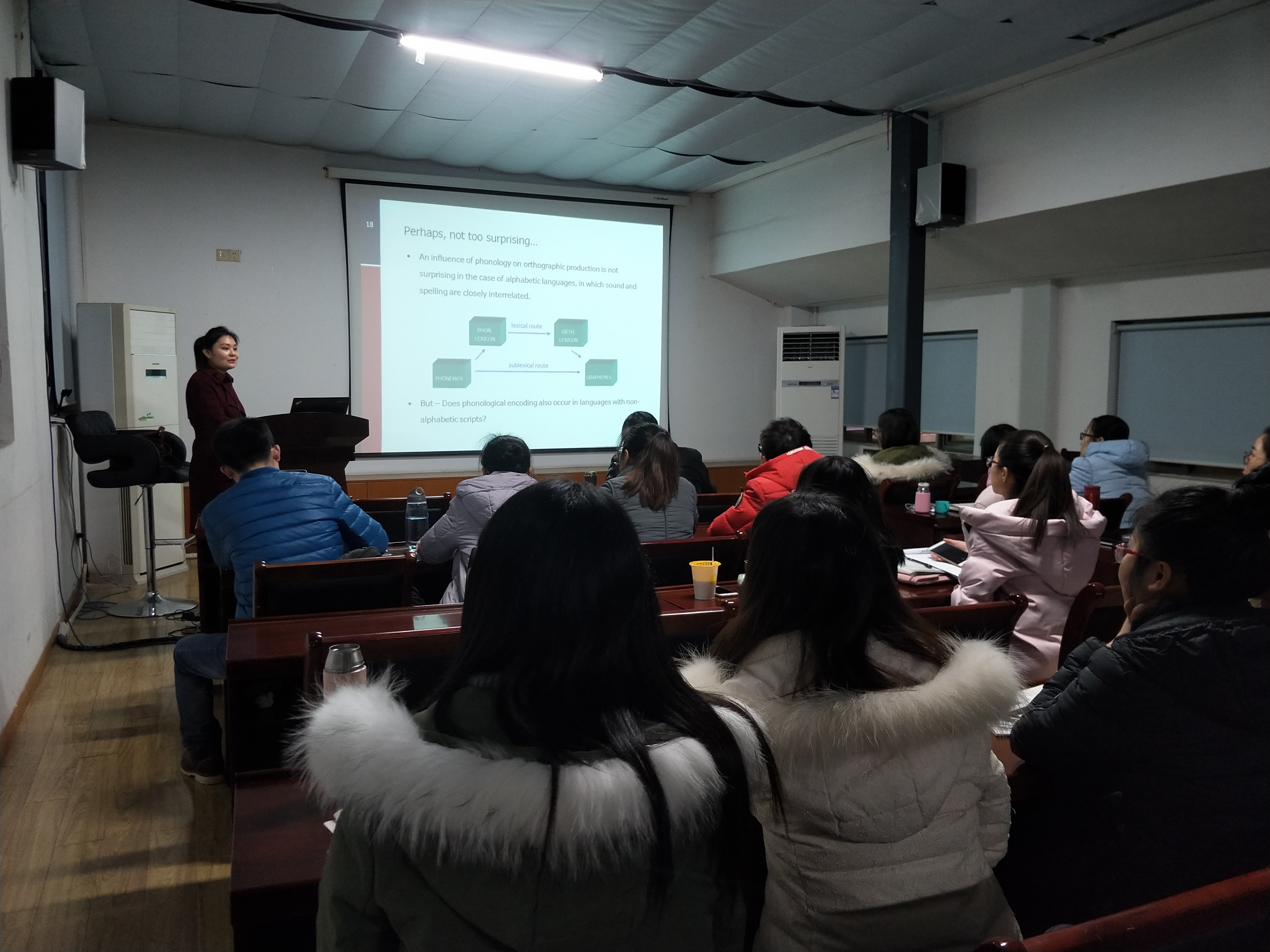 2017年12月11日19点,屈青青副研究员在17幢8楼阳光房进行了主题为“语言加工中字形和语音的交互”的学术报告。本次报告由曹晓华教授主持,参加此次学术报告的人员有公司部分教师及研究生。 屈青青副研究员首先向同学们介绍了语言产生领域的基本概念、过程和经典理论以及如何研究等问题。接下来,提出三个关键研究问题,并围绕这三个关键问题,介绍了一系列逻辑严密、实验设计精巧的研究工作,激发同学们的心理学研究思维。报告结束后,大家与屈老师展开热烈讨论。