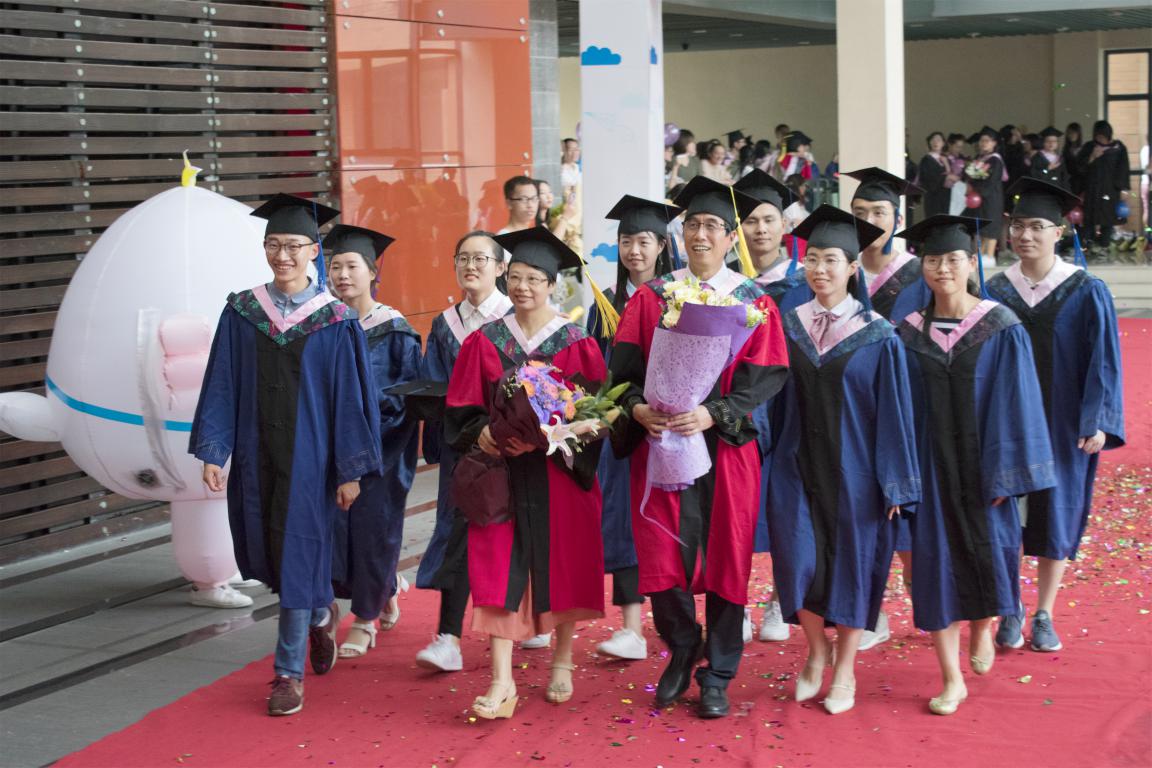 在老师的陪伴下,毕业生们携手踏上红毯,行过教育之门。随礼炮声响起,他们在此回忆相聚浙师的喜悦,交谈相遇彼此的点滴。