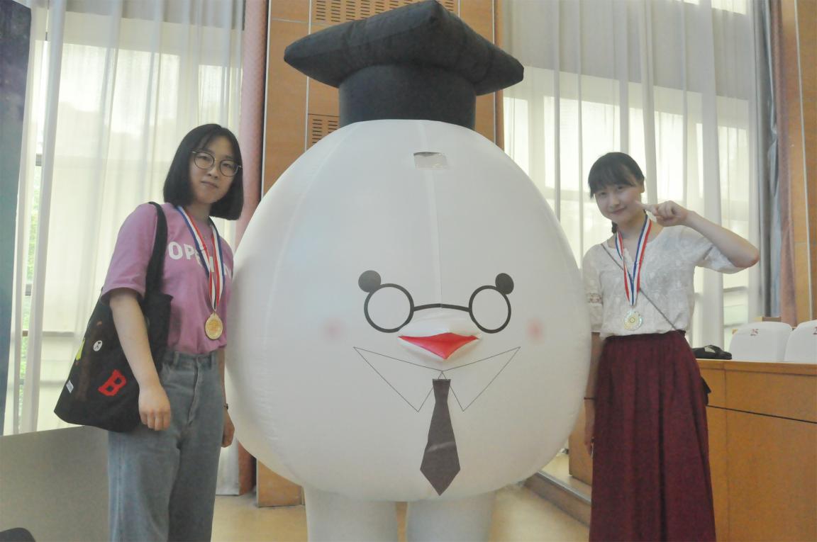 行过红毯,毕业生们来到创意合影墙前,以灯塔与行船为背景合影留念,教育吉祥物育小君、教小星也默默地守护着他们此刻幸福的时光。