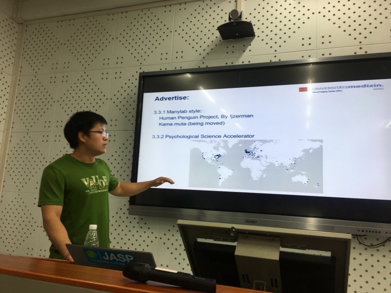 2018年8月1日晚6:30,德国Johannes Gutenberg(Mainz)大学医学中心博士后胡传鹏在2幢402学术汇报厅开展了题为“Estimate-based stats. & Bayes factor: Why and How”的学术报告。胡传鹏博士是最大的中文脑科学论坛52brain.com的主要负责人之一,美国Center for Open Science推广大使,微信公众号Open Science Club和知乎“Open Science Club”专栏发起人。