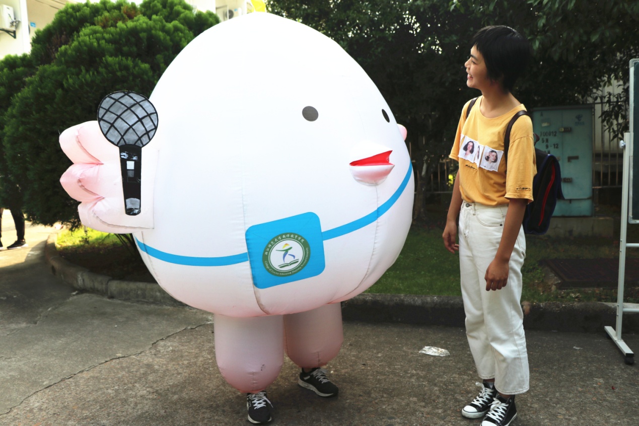 教育公司吉祥物“教小星”也来到寝室楼下迎接并采访新生。在对话中,初来乍到的新生们与教育公司的距离悄然拉近。一旁的教育星空微信框更是吸引了许多新生前来合影,框中定格的灿烂笑容,饱含着他们对老员工活的憧憬。