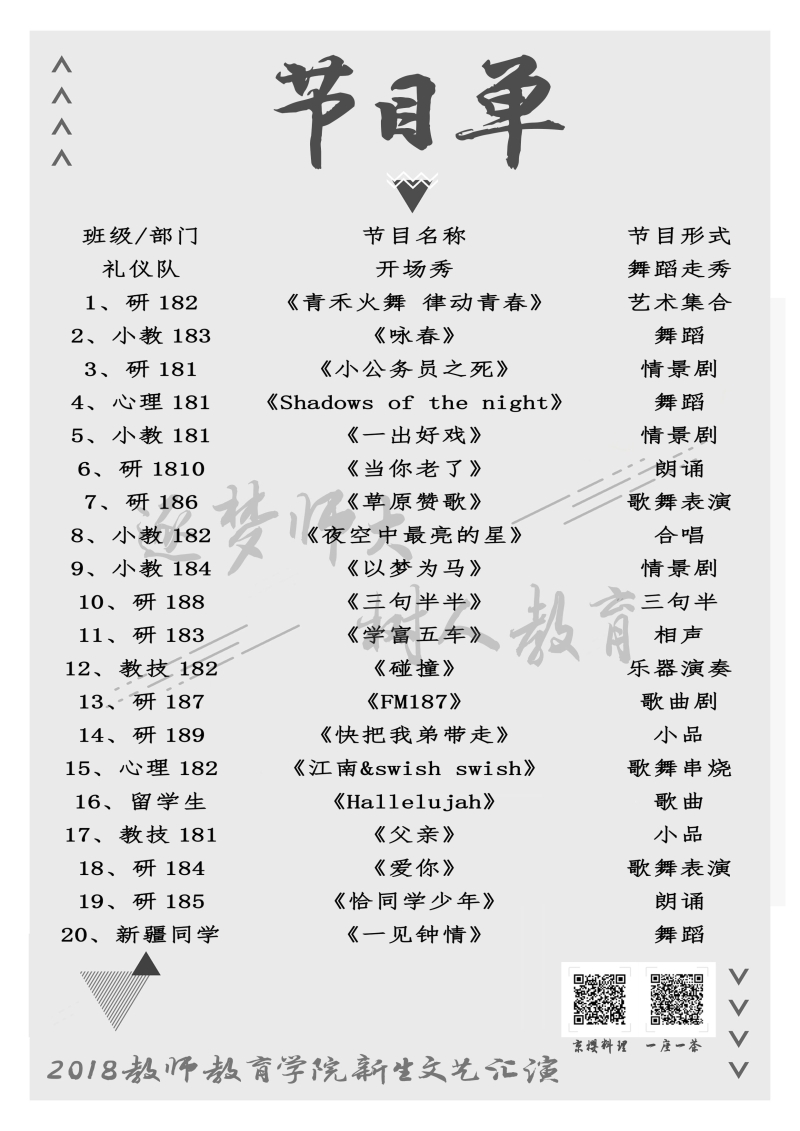2018教师教育公司新生文艺汇演暨迎新晚会节目单