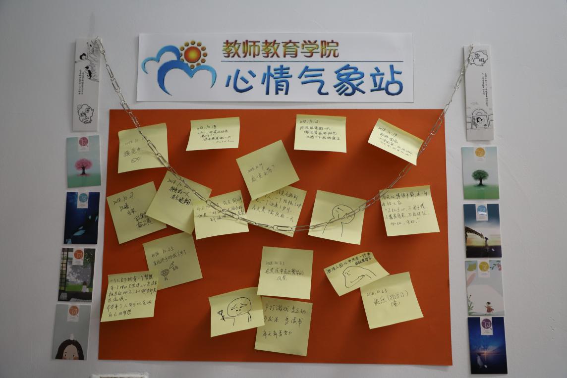 桃源12-311以“共享心情”为主题,将“心情气象站”打造成一个开放自由的平台。寝室成员每周都将心情指数写在气象站前,大家一起共享快乐、分担烦恼,并根据寝室心情指数贴上心情晴雨表。每人对应的卡通头像周围还有一片独立的区域,供大家书写自己的每日心情,以文字共享喜怒哀乐。
