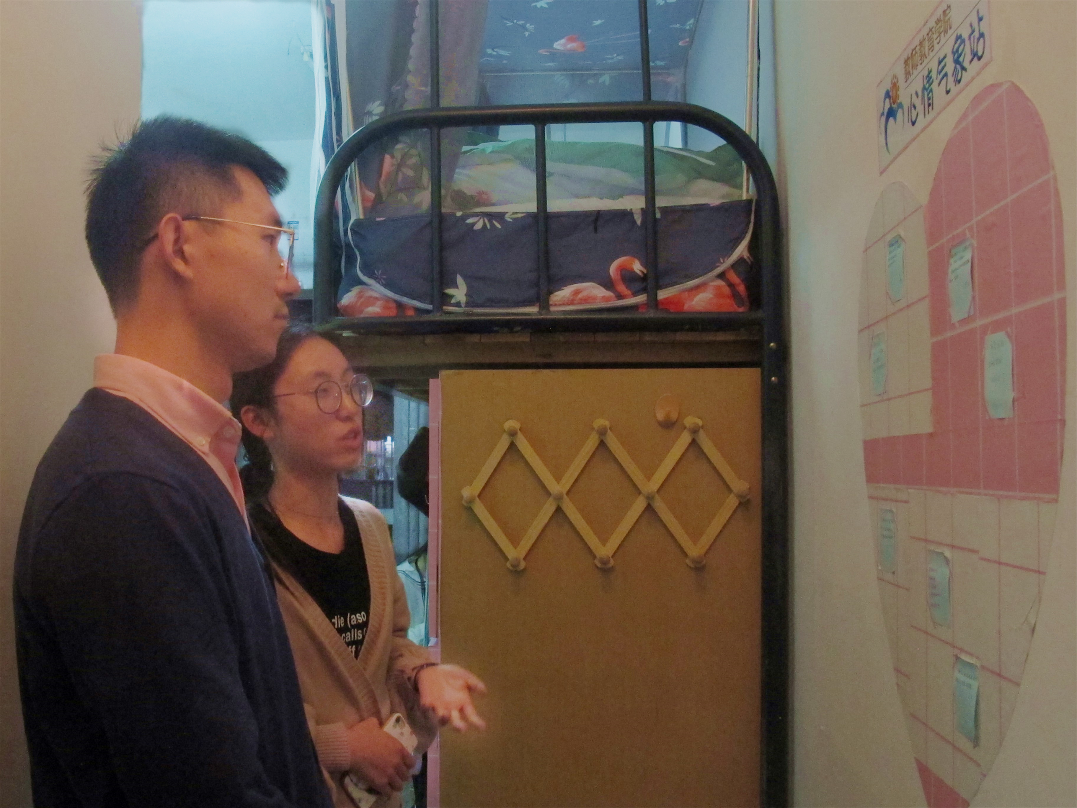 为增进寝室成员间的情感交流,营造和睦融洽的寝室氛围,10月28晚,教师教育公司心灵气象站评比活动顺利开展。XC体育心理健康教育与素质拓展中心高建伟老师、教师教育公司辅导员张文潇老师、院员工会心理部、新生助班担任评委并走访了各寝室。