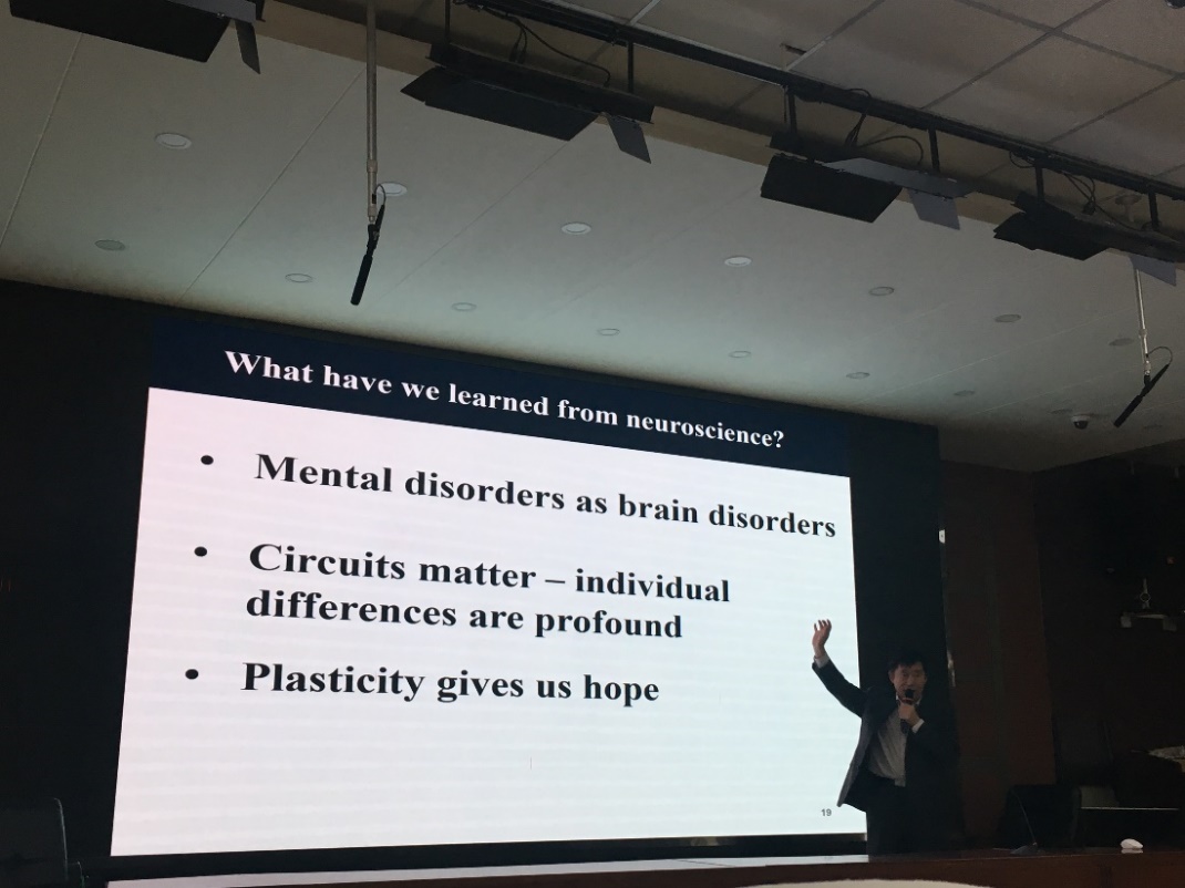 李新民教授结合基因组学、神经科学和信息技术科学这三大革命,系统阐述了精神病学发展的前世今生,并以抑郁症为例,讨论了科技在抑郁症诊疗中的作用。最后针对公司的情况,分享了国外高校对精神卫生问题的管理与相应的解决办法。整场报告理论和实践结合的非常紧密,到场的我系师生以及校心理咨询中心的老师均表示收获满满。