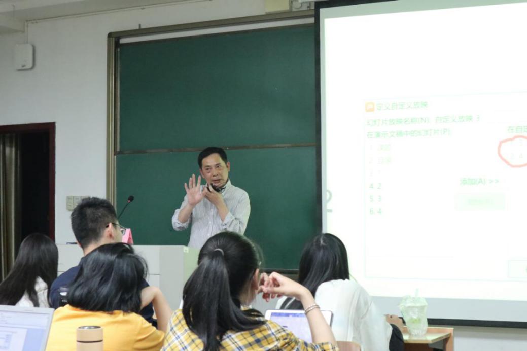 在金老师解读完制作要求和评价标准后,接着给同学们展示了一个案例。金老师以此案例为模板,详细讲解PPT制作怎样才能做出新意。金老师不仅仅是介绍理论上的内容,他还给现场同学们演示了操作过程,如何制作PPT模板、如何使用触发器、如何做好自定义动画等内容。他特别提醒同学,一定要事先考虑比赛中出现的任何突发状况,灵活应变。最后,金老师展示出他之前制作的PPT,通过PPT的一页页展示,让同学回顾之前讲解的内容。