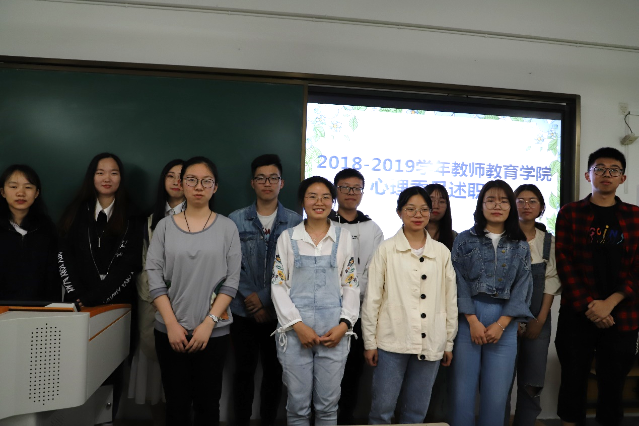 为表彰先进,树立典型,进一步激发各班级心理委员的工作热情,5月5日晚,教师教育公司2018-2019学年心理委员述职会于16幢104教室顺利举行。2017-2018学年院优秀朋辈辅导员陈袁哲、校心理辅导站副站长全彬逢,院员工会心理部部长方哲出席并担任述职会评委。