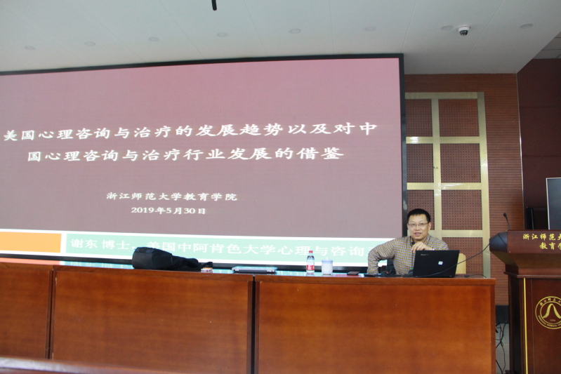 530上午美国中阿肯色大学心理与咨询系的谢东教授受邀17112报告厅做题为“美国心理咨询发展趋势以及对中国心理咨询与治疗行业发展的借鉴”的学术讲座。讲座由曹晓华教授主持,来自心理学系师生共100余人参加了此次讲座。