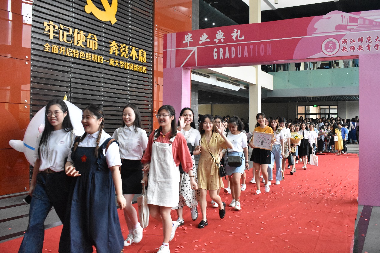 毕业生们两两携手,在老师的带领陪伴下,迈上教育红毯,行过教育之门。礼炮齐放,花瓣飞扬,同学们洋溢着青春的笑容,举手投足间充斥着幸福的味道,与老师的并肩同行在此刻也变得弥足珍贵。