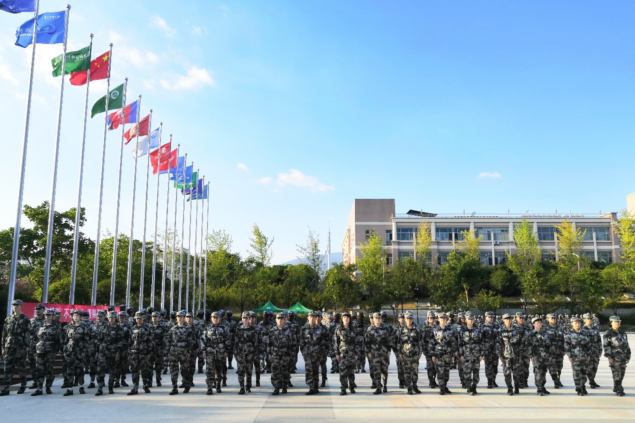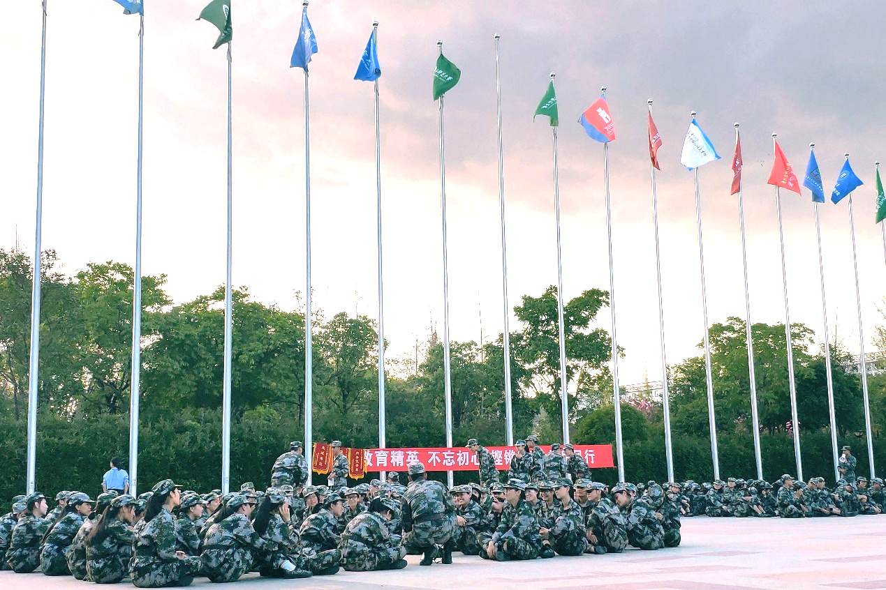 “教育精英,不忘初心!铿锵五营,雷厉风行!”气势磅礴的呐喊声回荡四方,新生们双腿伸直用力踏地,昂扬向前。整齐的迷彩服装下,是他们不输军人的决心与毅力。队伍里如铁的军纪,几日来一丝不苟的内务整理,教育新生们在汗水与坚持中收获成长。