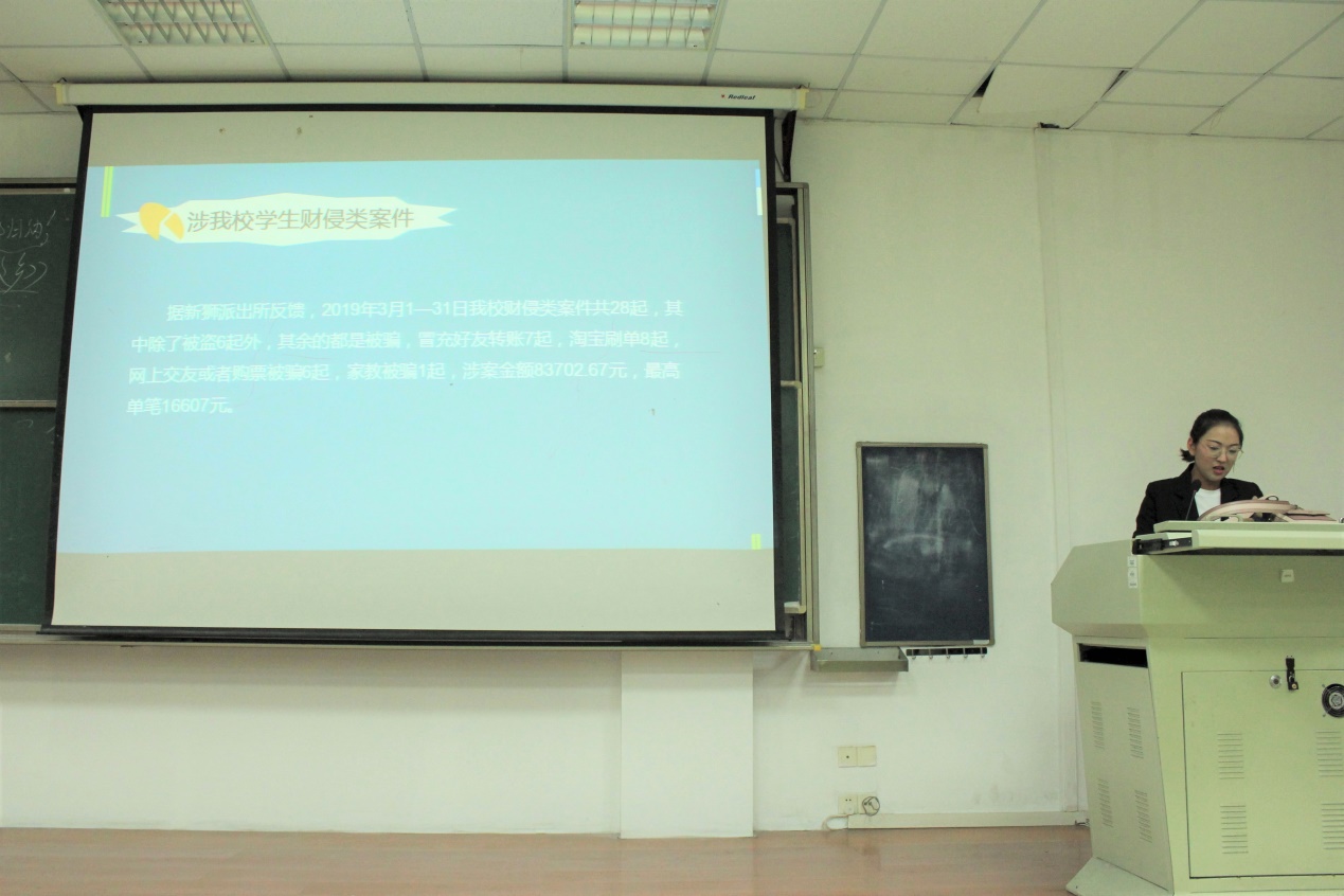 提及财产安全问题,蒋老师重点分析了校园高发的主要诈骗类型及特点,并向同学们展示了多起真实事件,提出“校园防诈八必须”并给予防盗防骗小贴士。关于寝室和实验室防火、禁毒防艾等其他安全问题,蒋老师细心地向同学们普及相关知识。