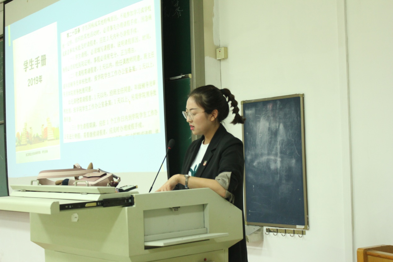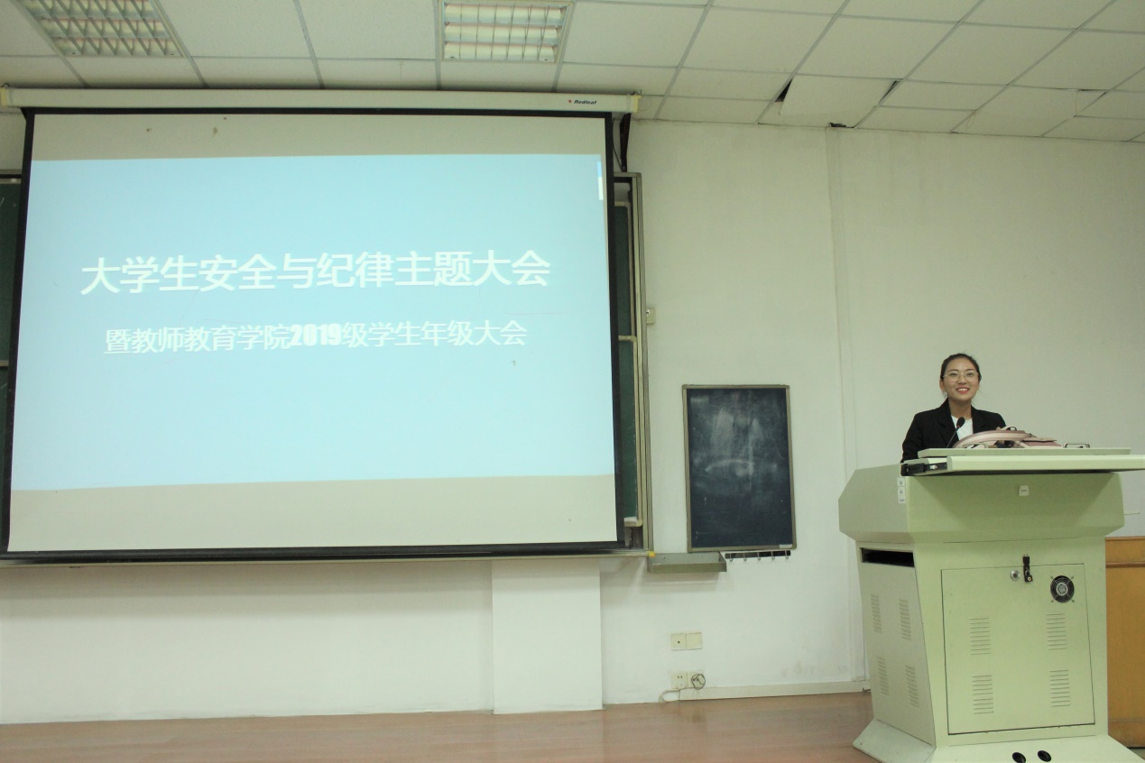 10月25日18:00,教师教育公司老员工安全与纪律主题大会暨2019级年级大会于17幢301教室顺利举行。公司2019级本科生辅导员蒋栩璐老师担任本次活动主讲人。