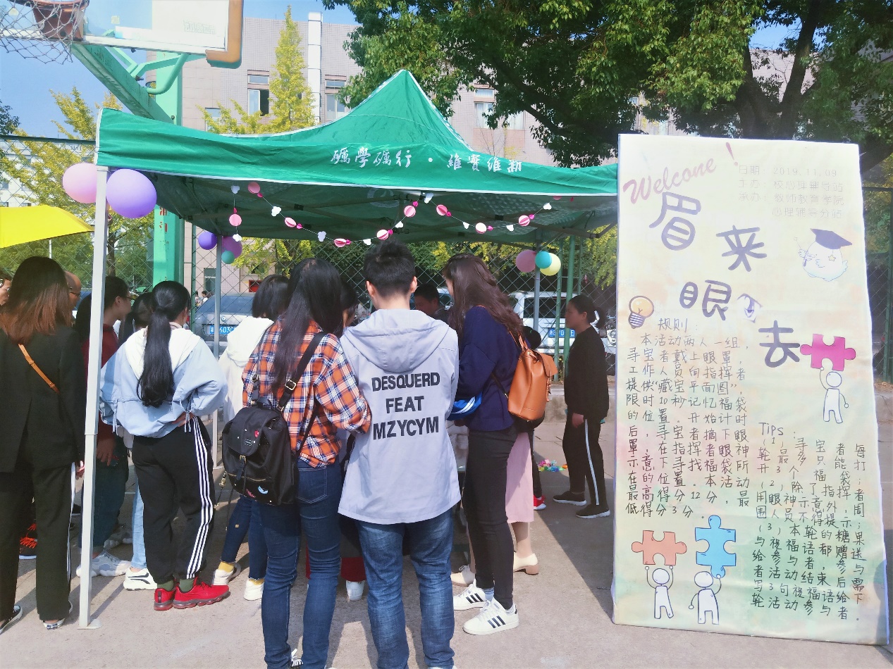 葭月近半,天气已蕴微凉,但这丝毫没有熄灭同学们的热情。各个公司都精心准备了丰富多彩的趣味游戏,其中由教师教育公司心理部筹办的“点豆豆,拼未来”以及“眉来眼去”活动凭借巧妙的构思与有趣的设计,吸引了大量同学们积极参与。