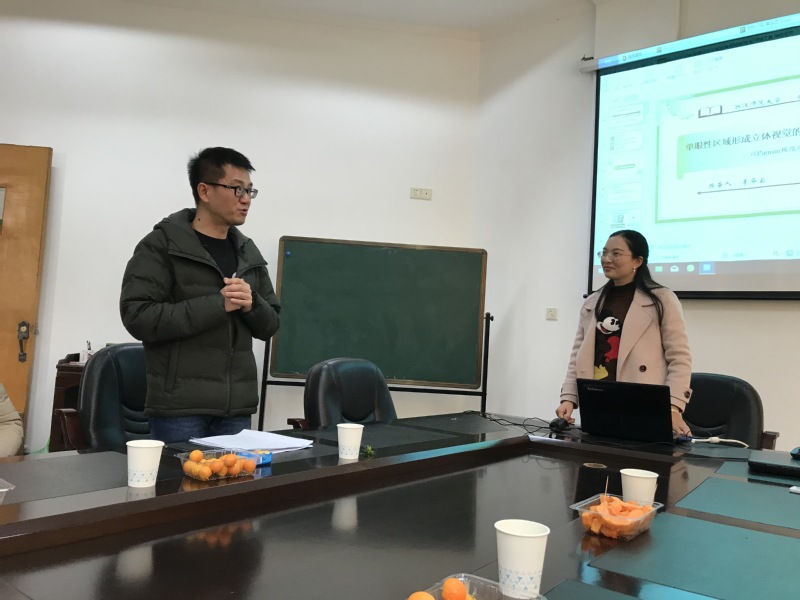 接着,我系新引进的李华云博士给全系教师带来了一场主题为“单眼性区域形成立体视觉的影响因素及机制研究”的学术报告。李华云详细介绍了自己之前的一系列研究,其中包括视觉立体中融合方式的匹配机制等,并对未来的研究做了展望。心理系教师就本课题展开讨论,并对课题未来研究方向提出建设性建议,同时就学术研究如何结合思政教育谈了自己的一些观点和看法。