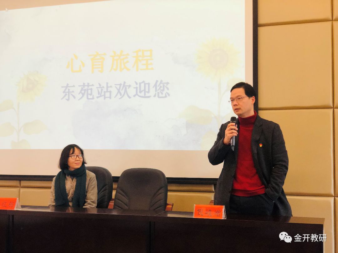 金华市东苑小学董事长倪崚嶒为读书会致辞,浙师大心理系李红梅老师为与会人员做心理辅导工作指导。