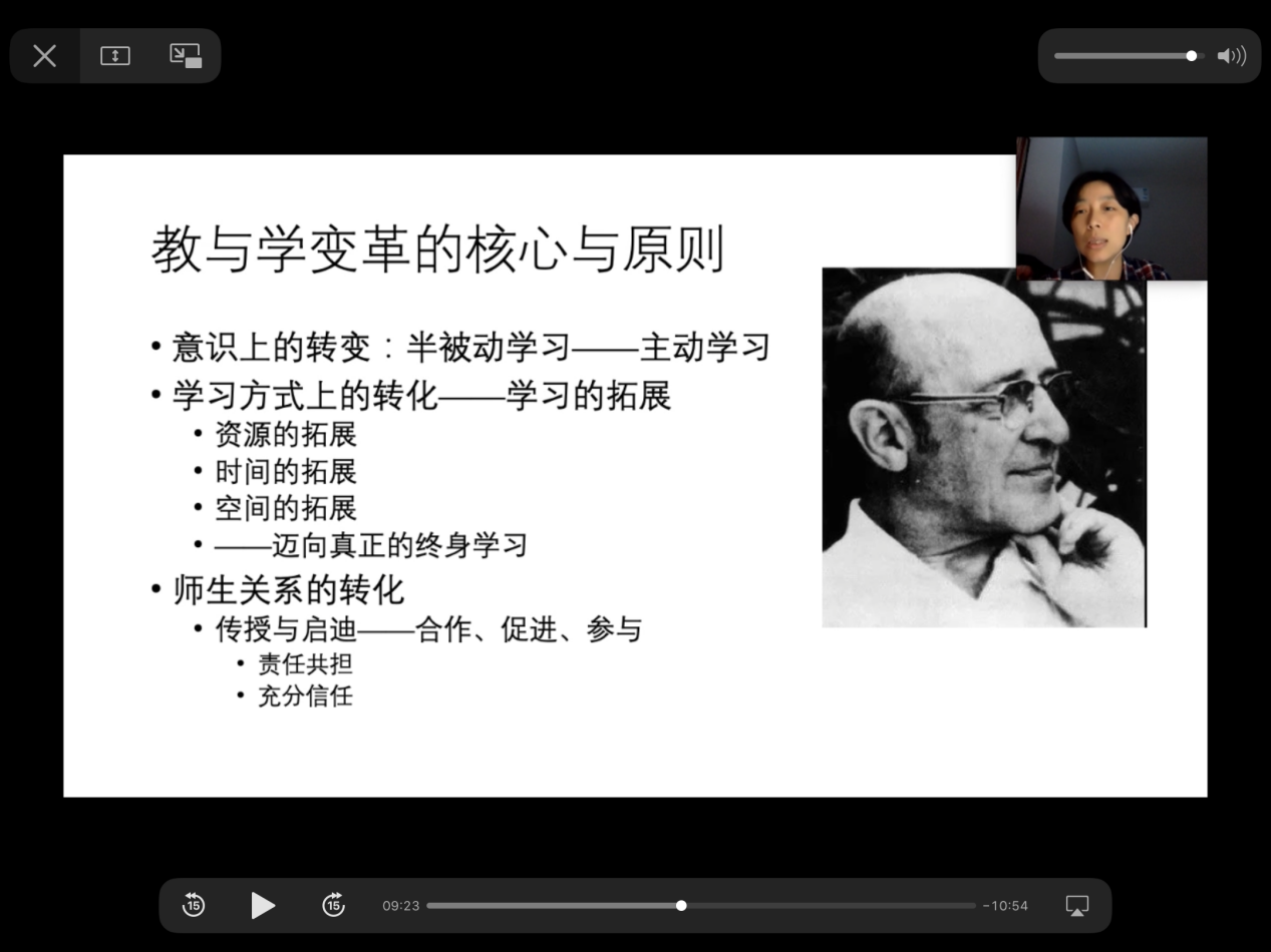 首先是心理系宋晓兰老师介绍了认知心理学线上线下混合的教学安排。宋老师认为,看上去是迫不得已的线上教学却蕴藏着极好的机遇,深化了这门课程的教学改革,真正实现了“让主动学习发生”这个她多年尝试探索的目标。作为一门理论性较强的学科,专业知识薄弱的大二员工对其认识理解有一定的困难。线上教学促使员工做到了意识上的转变,从半被动学习转变为主动学习,学习内容分为线上线下两部分,线下先要求员工观看微课视频,进行拓展阅读,整理学习笔记,梳理知识点,所有知识都由员工本人先自学和思考;再转到线上进行交流互动,采取小组讨论、大组汇总的形式,加深对知识体系的探究与深入理解。同学们反馈虽然需要花的时间和精力很多,但对这门课程有了系统和深入的掌握。