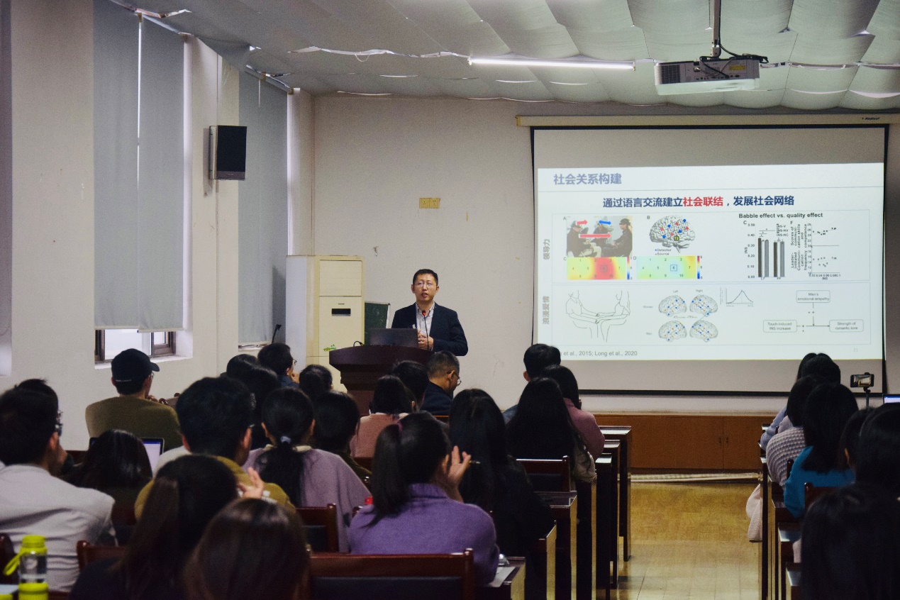 11月20号下午,北京师范大学的卢春明教授受心理系李伟健教授团队邀请,为心理系师生作学术报告。本次报告的主题为:语言交流的认知层级模型。讲座由孙炳海教授主持,来自心理学系师生共80余人聆听了此次报告。
