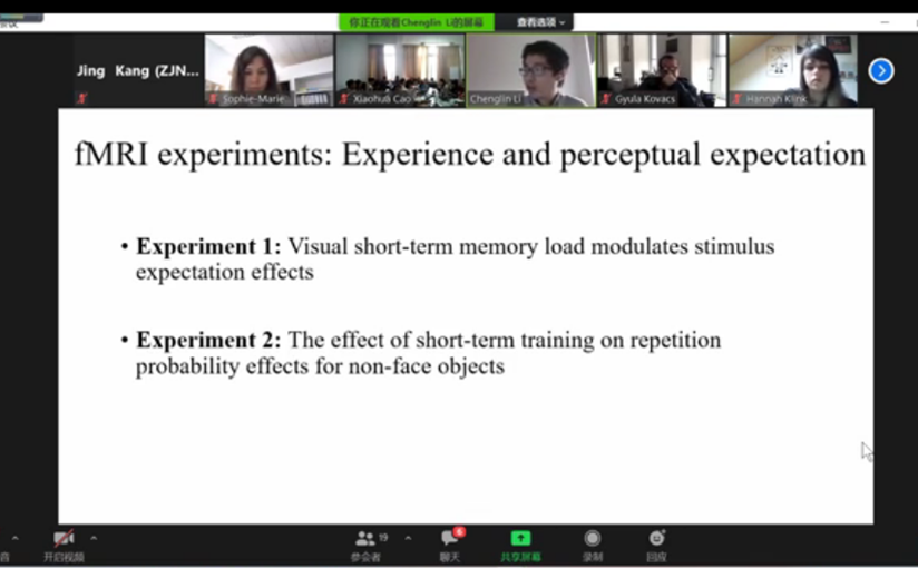 本次线**学项目主要安排10次讲座。在线上项目交流过程中,员工与校外专家通过Zoom进行线上视频连线。在交流学习过程中,不仅介绍了一些方法与仪器的使用,如fMRI、EEG/ERP、TMS等,也包括目前研究工作进展与成果,例如面孔的知觉加工与表征,预测编码,重复抑制现象以及刺激对脑区的作用研究等等。并且在每次学术交流之后,主讲人通过线上回答员工们的疑问与想法,不仅了解了员工对于知识的掌握程度,更加深了双方之间的沟通。