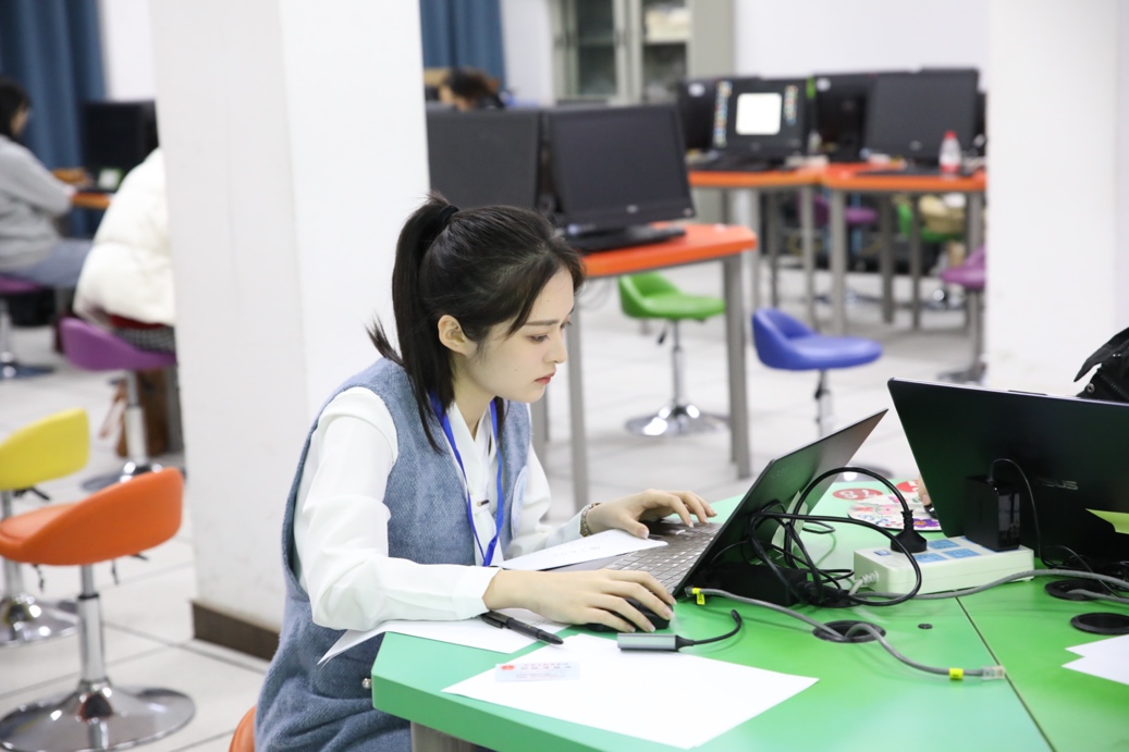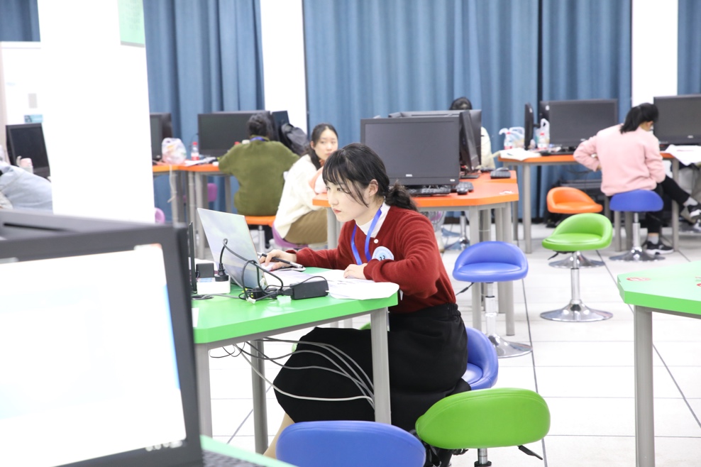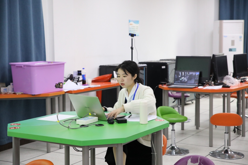 比赛的顺利举办离不开每一位志愿者的辛勤付出。他们分工明确,各司其职。从后勤服务工作,到引导选手进入教室,再到调节设备等等,随处可见志愿者们忙碌的身影。