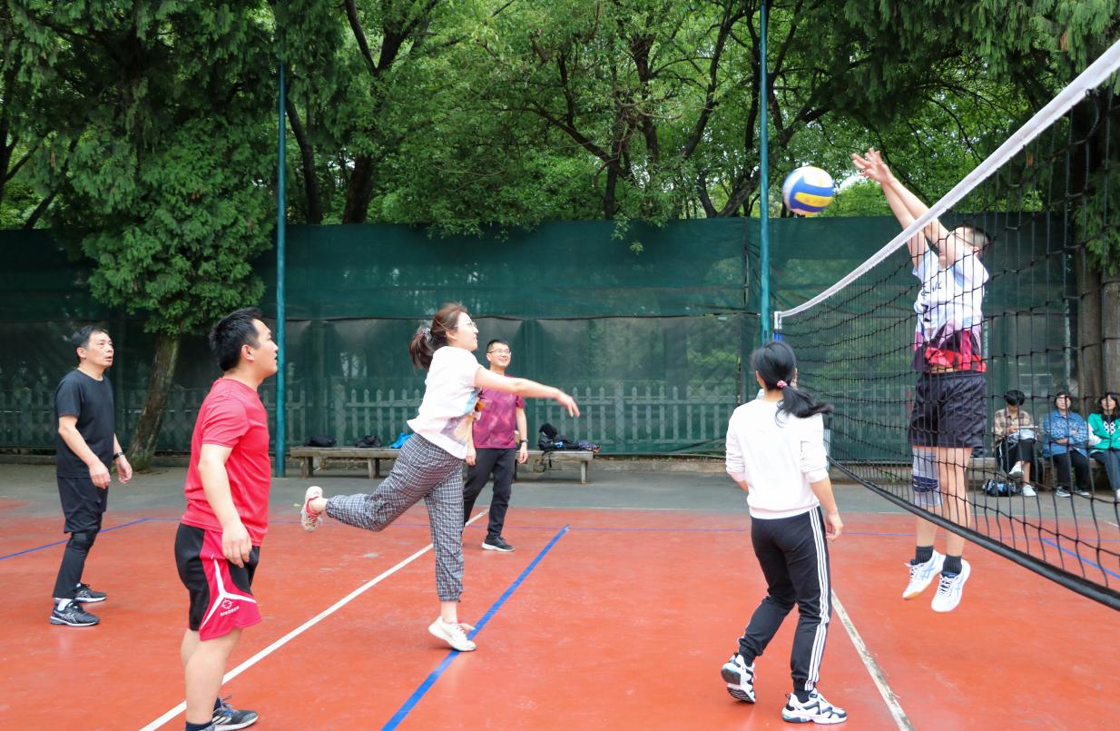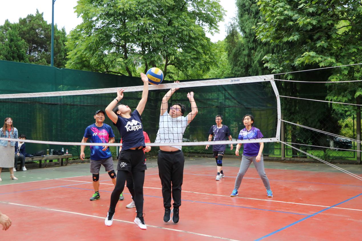 气氛愈发热火朝天,在稍作休息后,第二局在大家的掌声中拉开帷幕。教育公司其中一队老师势如破竹,靠着不俗的技巧、完美的配合,较快地占据上风,以21比13取得胜利。在另一边,地理与环境科公司的老师及时调整了状态和策略——果断的拦网、有针对性的防守,逆风翻盘让教育公司以三分的差距惜败。