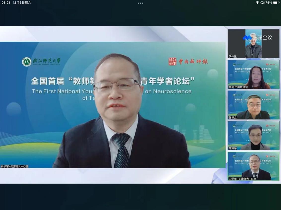 为促进教师教育的深度变革和教师培养质量的全面提升,12月3日,中国教师报和XC体育教师教育公司、浙江省智能教育技术与应用重点实验室共同承办了全国首届“教师教育神经科学青年学者论坛”。本次论坛,群贤毕至,来自北京师范大学、华东师范大学、浙江大学、深圳大学等10余所高校的共15位嘉宾带来了精彩的报告。论坛以腾讯会议+中国教师报视频号直播形式进行,本次论坛引起了社会广泛的关注和参与,直播当天累计观看人次约2万人次,累计点赞人次2万多次,取得了很好的社会影响力。