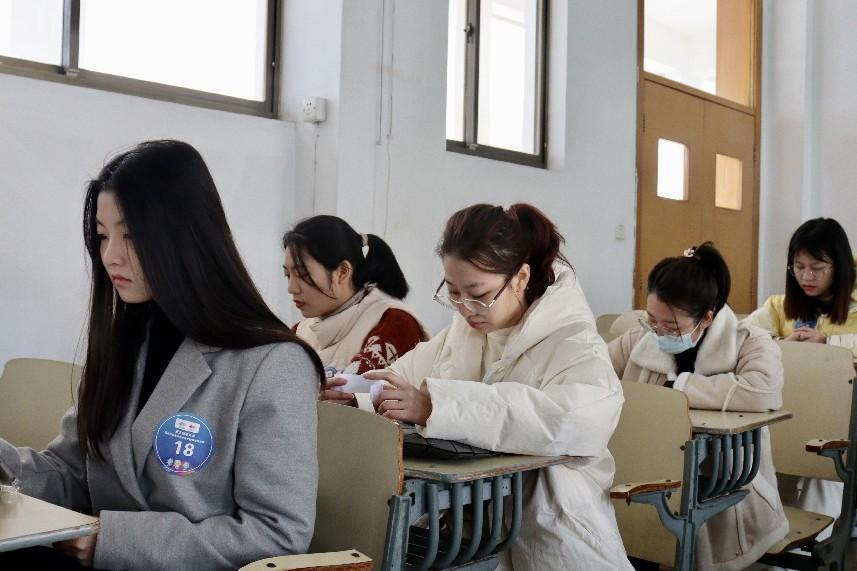 在候场室,同学们抽取面试的题目,同时为面试表现做最后的完善,反复熟悉自我介绍,构思语言表述,精炼表达方式。认真专注的神情,体现了同学们对此次面试的重视。