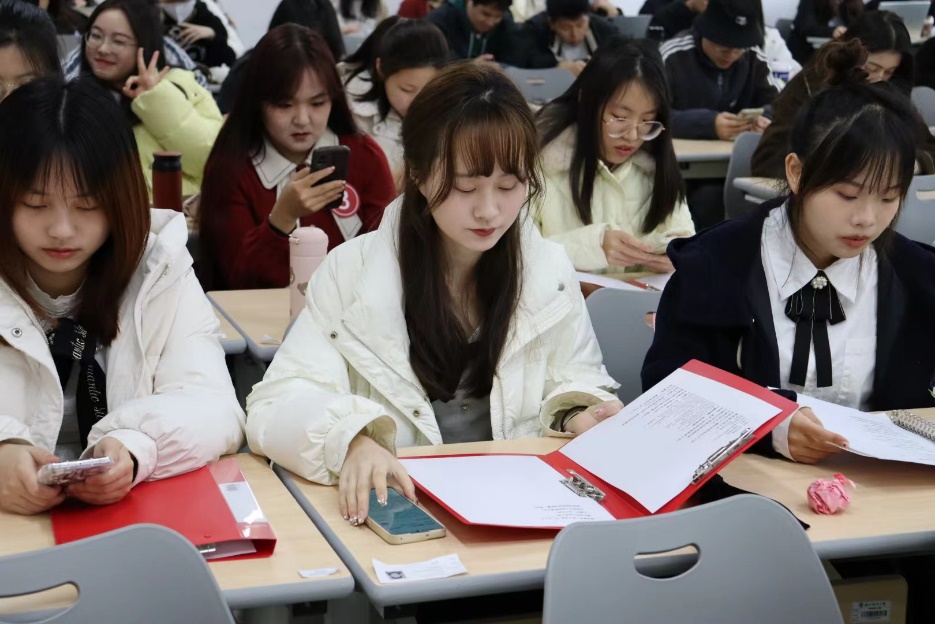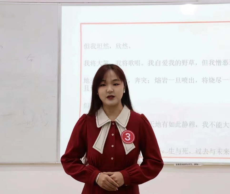 接下来的“妙音绘心,悦动心灵”即兴朗诵环节,在短短十分钟的准备时间内,各位选手展现出优异的朗诵能力。《热爱生命》《当我真正开始爱自己(节选)》《致橡树》……一首又一首诗,唱响了一曲又一曲热烈而蓬勃的生命之歌!