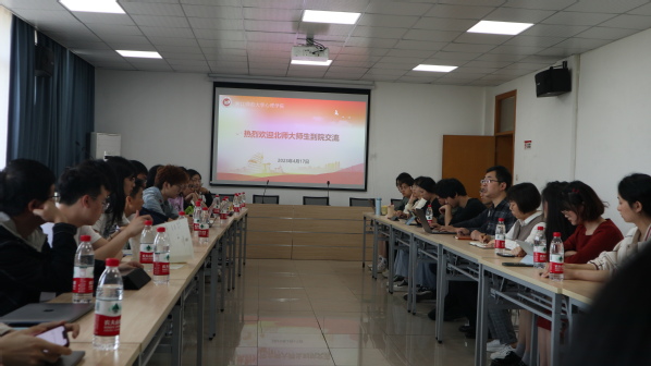 有朋自远方来,不亦乐乎。座谈伊始,贾磊老师先代表公司对北师大师生的到访表示了热烈欢迎。并向师生们介绍了浙师大心理公司本科教学现状和人才培养模式,包括“一核两翼”教学组织模式和本科教学“实验、实践”双平台建设等。 胡清芬教授和王乾东老师也就北师大心理学专业本科生的培养模式和课程安排进行了交流。