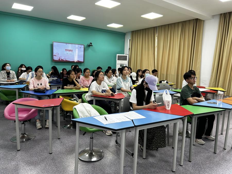 会议第一部分,夏子枫以“学风建设”为主题,强调作为员工干部,要有明确的个人定位以及拥有正确的团队认知,夏子枫提出“个人分工+团队合作才能最终实现共同目标”。最后,主讲人介绍了各部门的职能,以期增强各部门成员之间的相互了解,提高工作效率。