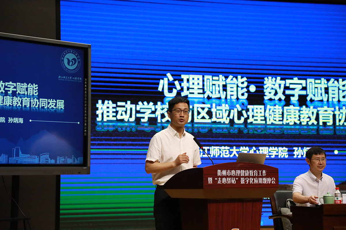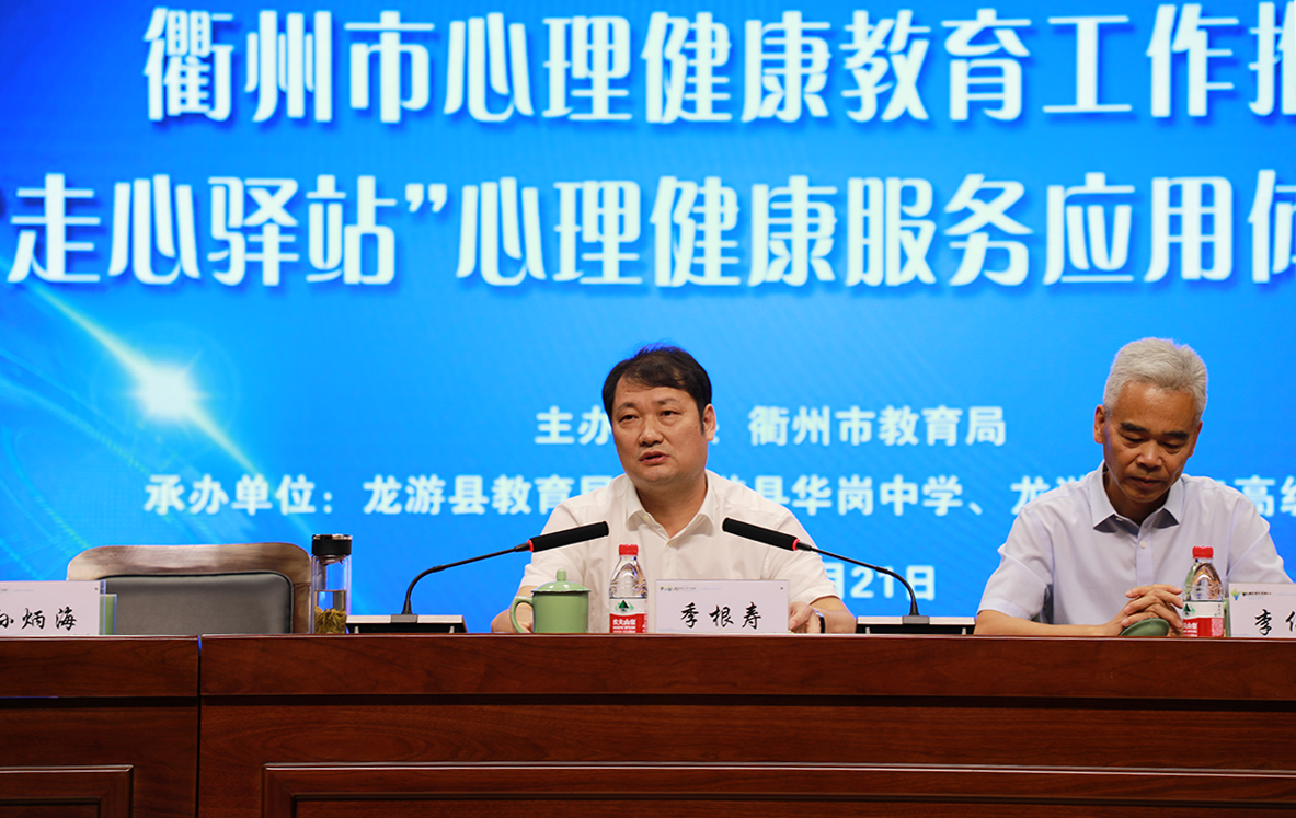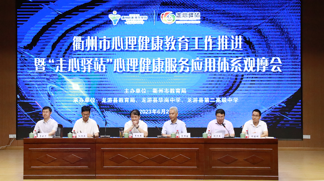 6月21日,衢州市心理健康教育工作推进暨“走心驿站”心理健康服务应用体系观摩会在龙游县举行。浙江省儿童青少年心理健康与危机干预智能实验室(简称“实验室”)首席专家李伟健和孙炳海教授应邀出席。中共衢州市委教育工作委员会副书记、党委书记、教育局局长季根寿、教育局总督学程卫东,衢州市教育局副局长曹晓华,龙游县副县长、教育局局长舒建明,以及衢州市各县(市、区)教育局分管领导、董事长、心理健康教研员和教师代表300余人参加会议。