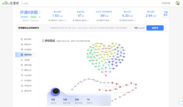 《教育心理学》作为浙江省一流课程和应用心理学专业核心课程,在筹划和建设课程知识图谱的过程中,团队成员一起研讨教学创新,聚焦课程目标、知识框架、学习逻辑等关键,拆解、细化专业知识,结合线上线下混合式教学实施情况,系统梳理了102个知识点,构建了149个知识关系,扩展了220个教学资源,14个思政要点,包含了教学资源层、知识体系层、问题体系层、能力体系层等4个维度,将教育心理学的各个知识点有机地联系起来,形成了一个完整的、多维度的知识网络。同时基于人工智能技术和自然语言处理算法,在员工的实际学习活动中不断优化和更新问题图谱,促使员工将知识点整合为系统性的知识结构,激发员工思考和建立学习本门课程的个性化知识图谱。目前《教育心理学》课程已向全国开放,服务47所高校1.63万名员工。