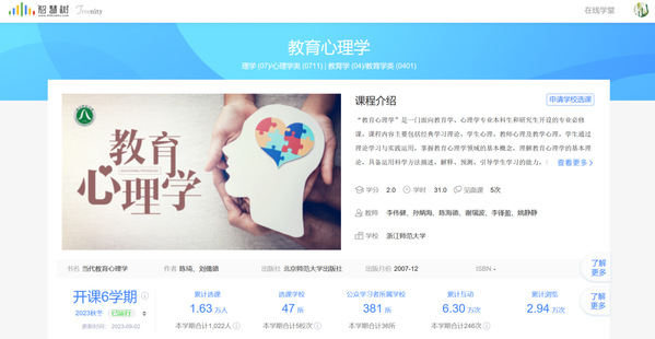 《教育心理学》作为浙江省一流课程和应用心理学专业核心课程,在筹划和建设课程知识图谱的过程中,团队成员一起研讨教学创新,聚焦课程目标、知识框架、学习逻辑等关键,拆解、细化专业知识,结合线上线下混合式教学实施情况,系统梳理了102个知识点,构建了149个知识关系,扩展了220个教学资源,14个思政要点,包含了教学资源层、知识体系层、问题体系层、能力体系层等4个维度,将教育心理学的各个知识点有机地联系起来,形成了一个完整的、多维度的知识网络。同时基于人工智能技术和自然语言处理算法,在员工的实际学习活动中不断优化和更新问题图谱,促使员工将知识点整合为系统性的知识结构,激发员工思考和建立学习本门课程的个性化知识图谱。目前《教育心理学》课程已向全国开放,服务47所高校1.63万名员工。