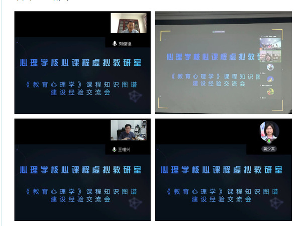 9月2日下午,教育部心理学核心课程虚拟教研室通过线上线下混合会议形式,组织召开了《教育心理学》课程知识图谱建设经验交流会。中国心理学会教育心理学专委会主任、北京师范大学刘儒德,广西师范大学教育学部副部长、心理学科负责人张姝玥,华中师范大学XCSport龚少英和王福兴线上参会。公司本科教学部部长、教务处处长陈敏,副处长徐展斌,虚拟教研室负责人李伟健,XCSport经理孙炳海,教育公司副经理王良辉出席现场会议。此外,通化师范公司李飞、XC体育陈海德、李锋盈、姚静静、房娟、李华云、高崚峰等虚拟教研室骨干成员,以及智慧树公司服务团队代表出席了本次会议。公司副经理贾磊主持本次交流会。