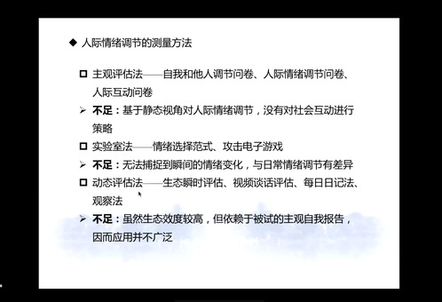 在第二部分,汪俊教授主要介绍了社会互动在在人际情绪调节中的重要性以及人际情绪调节的理论模型、测量方法等。