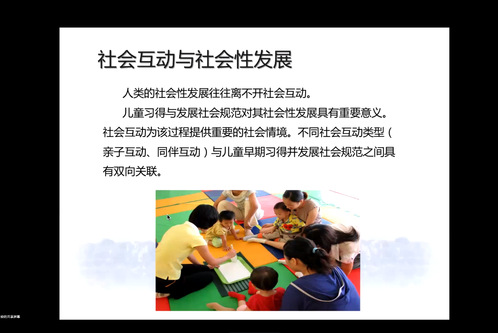 随后,汪俊教授从四个部分详细讲解了社会互动的研究内容,这些研究内容为我们理解社会互动的本质及其对个体和社会发展的重要作用提供了重要参考。在第一部分,介绍了社会互动在社会性和发展中的重要性,包括亲子互动和同伴互动两种形式。在儿童社会化的过程中,这些互动对认知和社会能力的发展都起到了重要作用。此外,生态理论认为,家庭和同伴是两个重要的微系统,它们相互作用影响着个体的发展和成长。