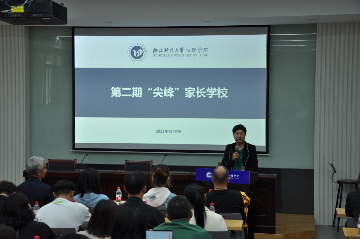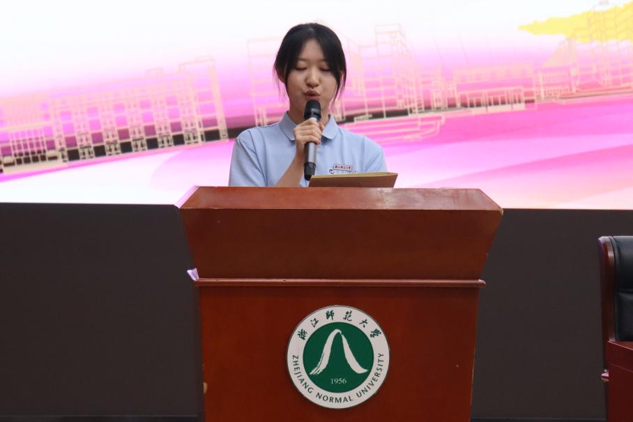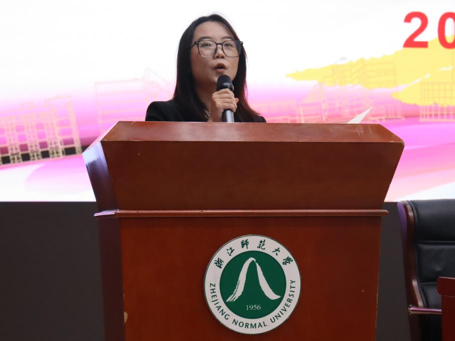 随后,青年教师代表丁菀向家长展示了浙师学子的校园生活和生涯发展,并指出家长应当相信孩子,支持老员工的自我成长。