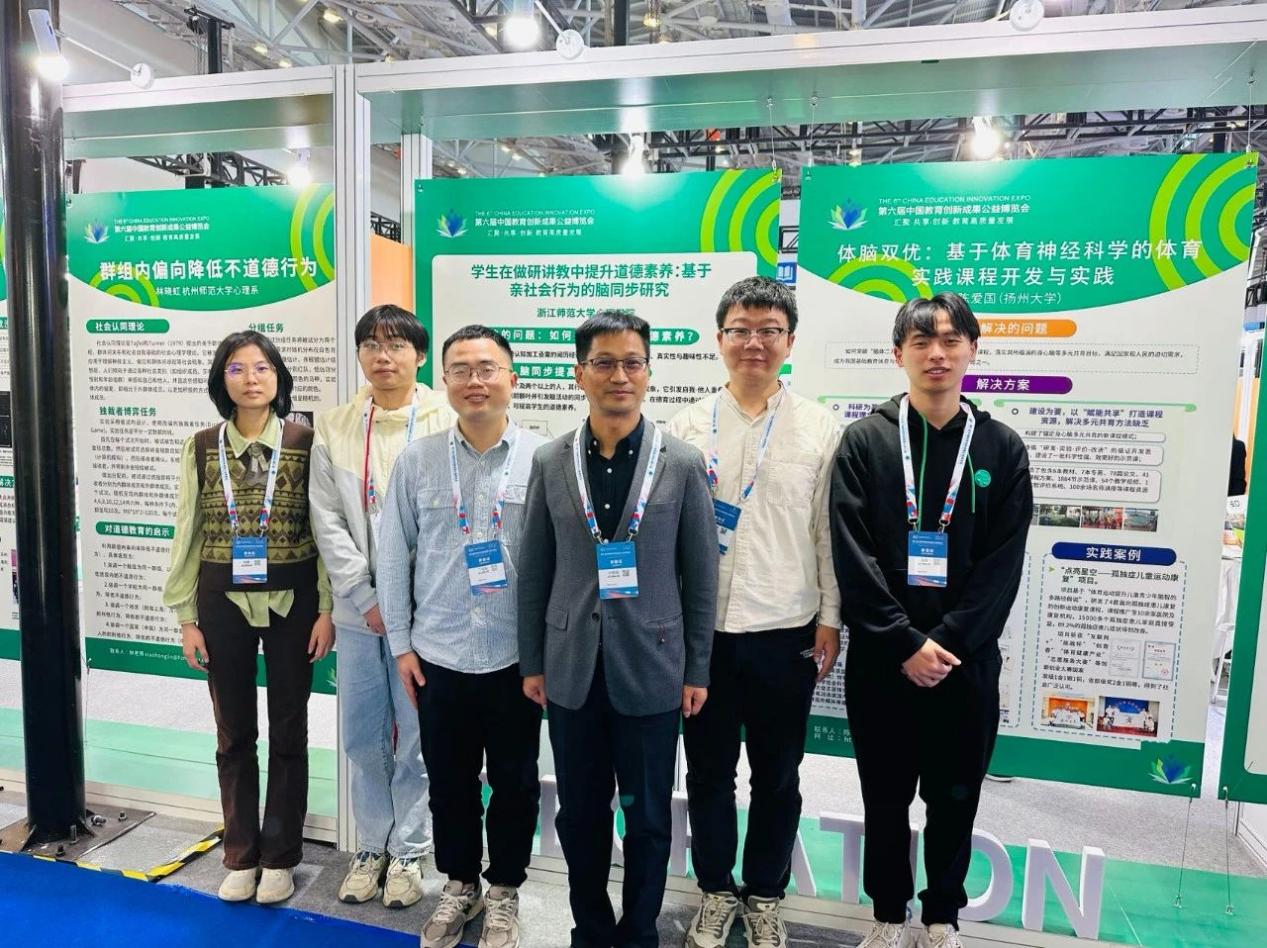 2023年11月18-21日,心理院经理孙炳海与公司继教处处长钱旭升、教育集团副总经理沈夏林、继教处徐烽等一行9人参加“第六届中国教育创新成果公益博览会”,并在教师教育神经科学展区做具身德育教学成果经验分享。据悉,本届教博会在广东珠海召开,来自各地的近3000人参加本届教博会。