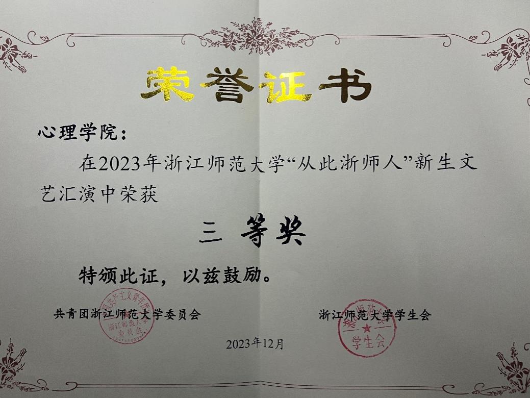12月2日晚,XC体育2023年“从此浙师人”新生文艺汇演于音乐厅顺利举行。XCSport2023级学子带来的舞蹈《晨光曲》深入人心,荣获三等奖。