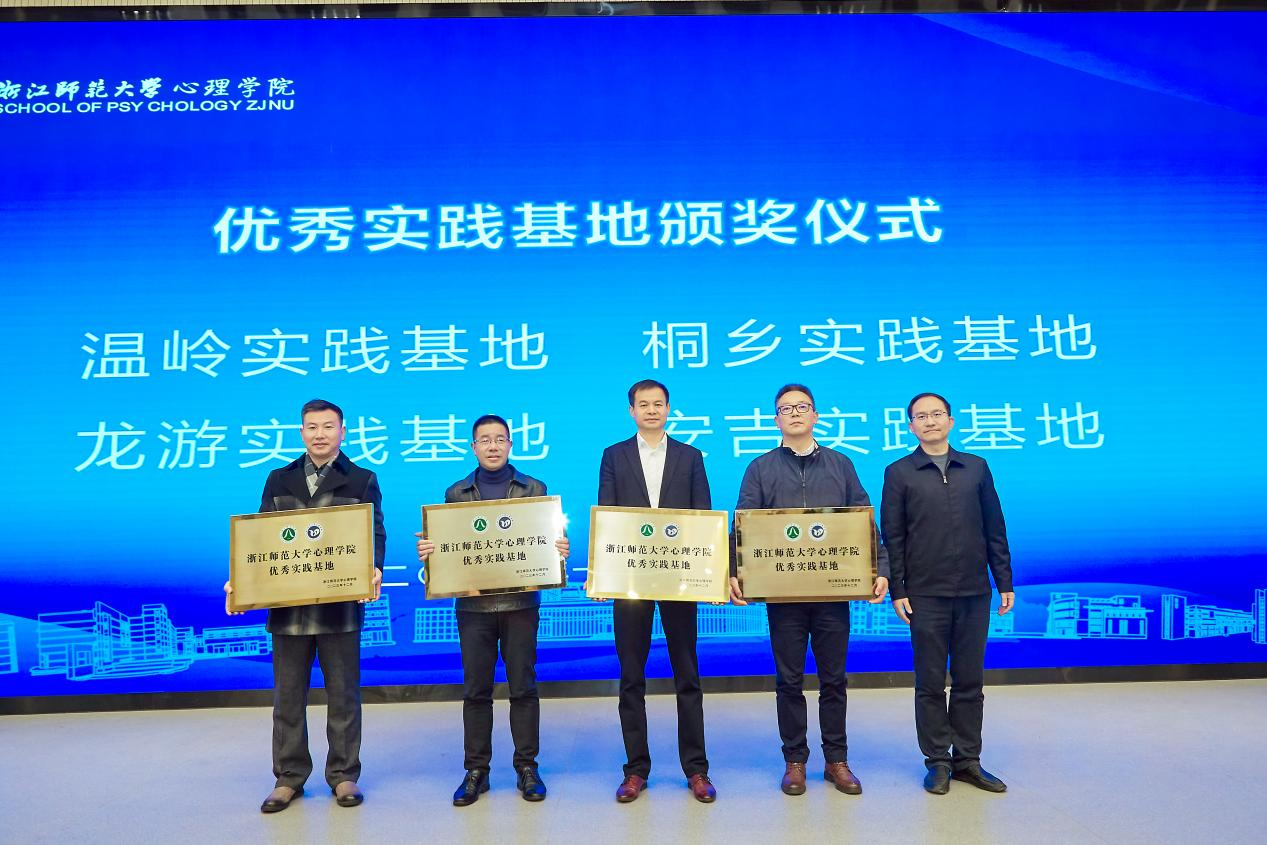 为了表彰今年一年来为应用心理专业实践提供了良好保障的4个实践基地颁发优秀实践基地奖牌。其中,温岭教育局实践基地是教育部应用心理专业学位教学指导委员会基地,桐乡市人民政府心理健康实践基地和拱墅区教育局基地是省教育厅实践基地,龙游和安吉教育局是今年新开设的基地。