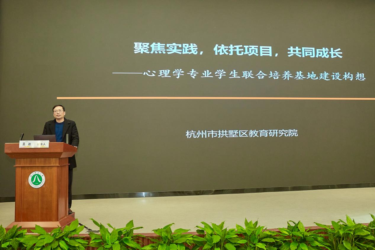 研讨会的召开进一步明确心理学专业人才的培养目标与路径,对心理专业人才如何更好应对社会服务与未来挑战提出了更高的期望和要求。出席研讨会的有教务处副处长徐展斌、研究生院副经理李文博,实践基地代表温岭市教育发展研究院经理葛文辉、桐乡市教育局副局长路茂方、龙游县教育局副局长陈孝余、安吉县教育局副局长李斌、拱墅区教育研究院副经理王达、乐清市教育局副局长王小强、浦江县教育局副局长徐双莲、义乌市教育局副局长吴彩军等,及山区26县对口县龙泉、松阳等地合作实践公司的领导和教师。