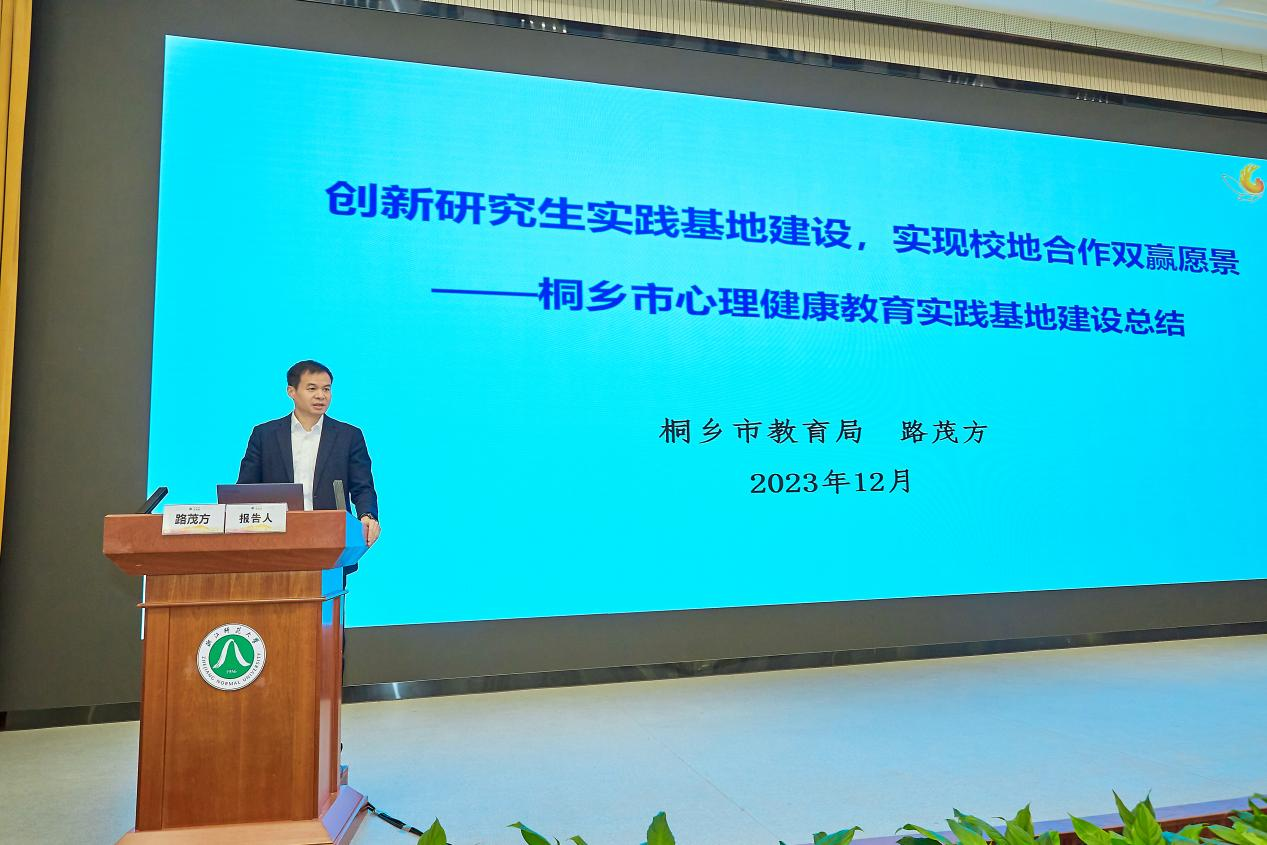 葛文辉、路茂方、陈孝余、李斌、王达、阮剑全、徐双莲、钱红强代表温岭、桐乡、龙游、安吉、拱墅、乐清、浦江与义乌分别作题为《共建实习基地,筑梦教育未来》《创新研究生实践基地建设,实现校地合作双赢愿景》《龙游实践基地2023年工作汇报》《心有所信,方能行远》《聚集实践、依托项目,共同成长》《打造“1+N”实践基地群,构建人才培养协同体系》《心理学专业实践基地浦江方案》《义乌市绣湖中学教育集团实践基地校工作汇报》的报告。
