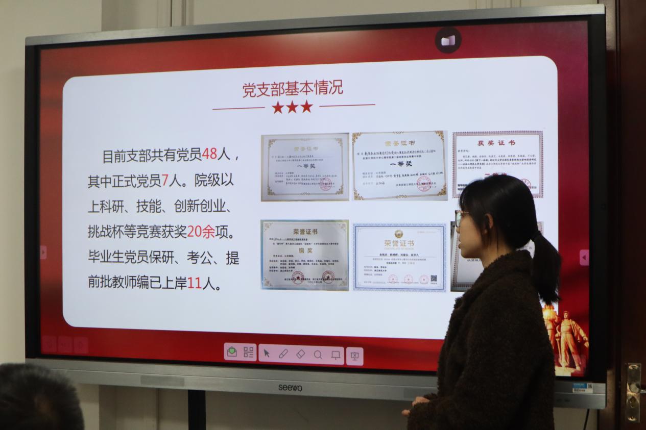 会上,2个教师党支部、5个员工党支部书记对支部过去一年的工作进行了全面梳理,回顾总结了本支部工作上取得的成效,指出存在的问题,并提出接下来支部建设的工作思路和工作计划。