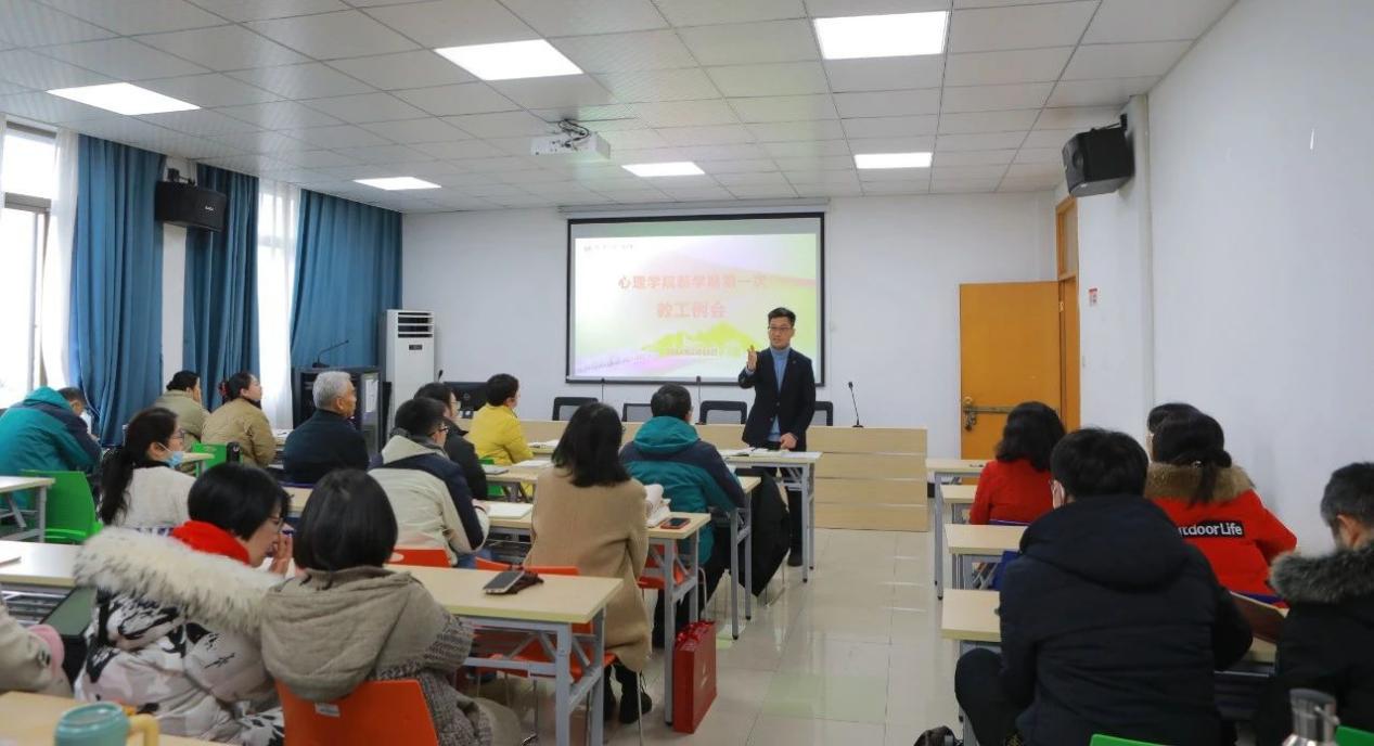 孙炳海传达了公司年度工作会议精神,围绕“学习心理学能为社会做什么贡献”问题,他提出要处理好五个方面的关系:一是处理好自己业务与政策学习的关系,二是处理好重点工作与常规工作的关系,三是处理好教学科研与社会服务的关系,四是处理好兴趣与责任的关系,五是处理好底线与高线的关系。