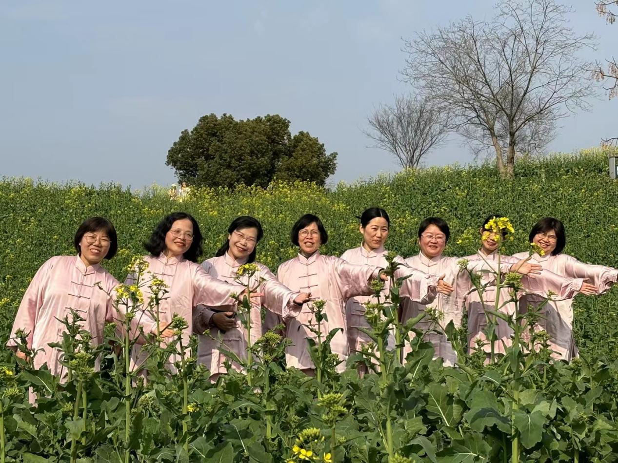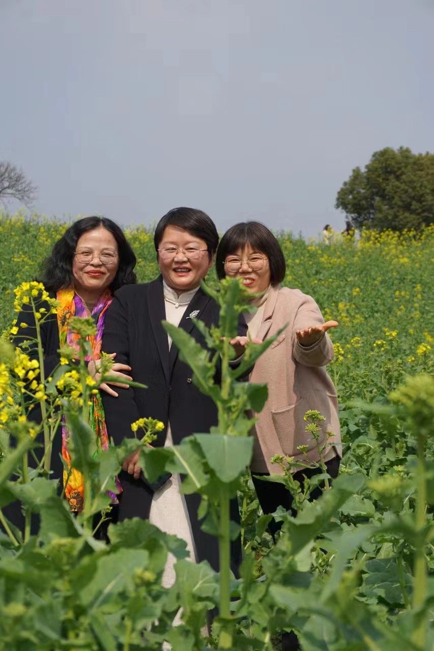 黄花尽灿烂,女神显娉婷。女神团随之共往油菜花田。金灿灿的油菜花随着微风慢慢摇曳,传来沁人心脾的清香。春天的多彩映衬着老师们灿烂的笑容。大家尽情徜徉在这片金色的海洋中。