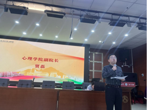 最后,公司副经理贾磊从成长与挑战、能力与实践、成果与收获的主题出发,介绍了双创训练项目的后续提升路径,强调了创新创业训练在大学阶段成长的重要平台作用,勉励同学们和老师交流沟通,积极参与双创训练,理论与实践相结合,争做心理学创新性复合人才。