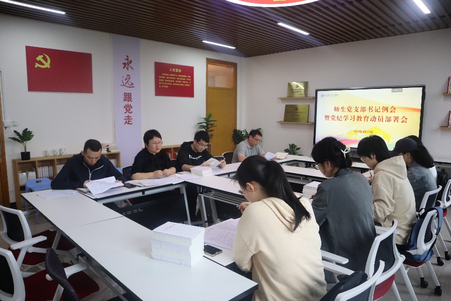马莉书记传达公司“党的建设工作领导小组扩大会议”相关精神,强调党纪学习教育的重要性,要求全体师生党员要学深悟透习近平总书记关于党纪学习教育的重要讲话和重要指示精神,以实际行动做好表率。随后,马莉书记就公司高质量落实党纪学习教育工作展开部署,她指出各师生党支部要丰富党纪学习教育的形式,把党纪学习融入日常、抓在经常,同时要突出问题导向、注重实践实效,确保党纪学习教育抓真抓实、学有成效。